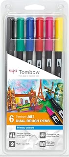 Tombow ABT-6P-1 Lot de 6 Feutres pinceau à 2 pointes, couleurs primaires
