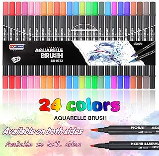 Feutres Aquarelle, 24 Couleurs Stylo Aquarelle, Feutres de Coloriage, Feutres Pinceaux, Dual Brush Pen, Feutres Coloriage Adulte, pour Coloriage Adulte, Dessiner, Bullet Journal, Calligraphie, Manga