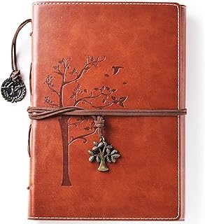 Journal en cuir rechargeable, papier ligné, arbre de vie fait à la main, journal en cuir, bloc-notes journalier relié, pour homme et femme, taille moyenne (7 X 5)