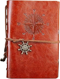 Journal en Cuir Ordinateur Portable CHEPL Rétro Journal Carnet Cahier de Voyage Navigation Bloc-Notes avec Pages Vierges et Pendentifs Vintage - Couleur Marron