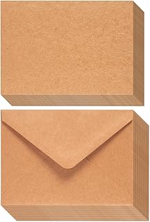 50 Enveloppes en Papier Kraft Brun Format avec 50 Cartes Assorties pour Invitations et Messages