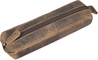STILORD 'Quinn' Trousse de Stylo Plumier en Cuir Vintage Stylos Plumier en Cuir Vintage Porte-Plume Pochette à Crayons Ecolier pour Homme Femme, Couleur:Kara - Cognac