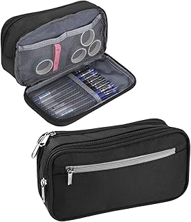 Trousse Scolaire Double Plumier, étui à Crayons Plumier Grande Capacité Sac de Maquillage Trousse Scolaire Sac à Stylos Sac Stationnaire Pochette Organisateur (noir)