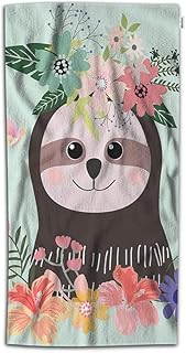 Moslion Paresseux Serviettes à main 30L x 15W Pouce Mignon Animaux Botanique Art Fleur Nature Smile Été Smile Serviettes de cuisine Serviettes de cuisine pour salle de bain Doux Polyester Microfibre