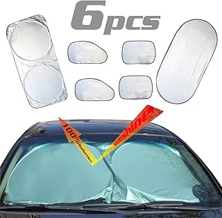 ZoneYan Pare-Brise-Soleil Argenté Enduit, Pare Brise Avant Protège Le Pare-Soleil, Repliable Pare Soleil Voiture Anti UV, Soleil de Voiture Protection Parebrise, Pare-Soleil de Voiture Ensemble de 6