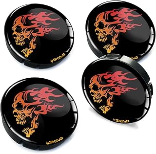 Biomar Labs® 4 x 60mm 3D Enjoliveurs Cache-moyeu pour Jante Moyeu de Roue Centre Hub Caps Flamme Crâne Skull C 56