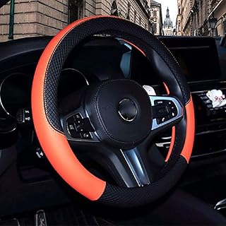 Protecteur de voiture antidérapant respirant universel Riloer - Couvre volant de voiture pour voiture, camion, SUV, fourgonnette, taille 38 cm / 15 pouces, noir et orange