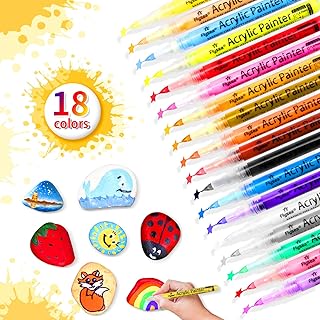 Stylos de Peinture Acrylique, Kit de Peinture sur Roche, Marqueurs Permanents Ensemble de Stylos à Base d'eau pour Céramique, Verre, Pierres, Galets, Non Toxique, Séchage Rapide (18 couleurs)
