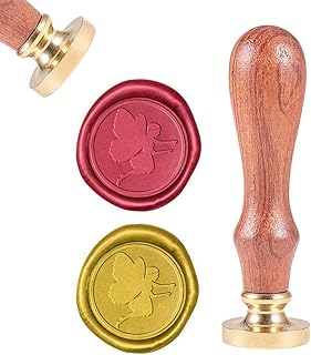 CRASPIRE Fée Tampon de Cire, Tampons de Cire à Cacheter Rétro Bois Tampon Cachet de Cire 25mm Amovible Joint en Laiton Manche en Bois pour Enveloppes Invitations Embellissement de Mariage