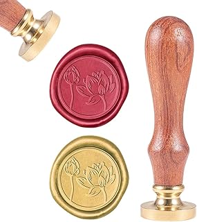 CRASPIRE Tampon de Cire, Tampons de Cire à Cacheter Lotus Chinois Fleur Rétro Bois Tampon Cachet de Cire 25mm Amovible Joint en Laiton Manche en Bois pour Enveloppes Invitations Embellissement