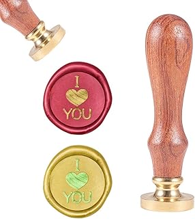 CRASPIRE Mot Cachet de Cire Tampon Encreur, Je t'aime Tampons de Cire à Cacheter Tampon Bois Rétro Coeur Cachet de Cire 25mm Amovible Tête en Laiton Manche en Bois pour Le Cadeau de Décoration