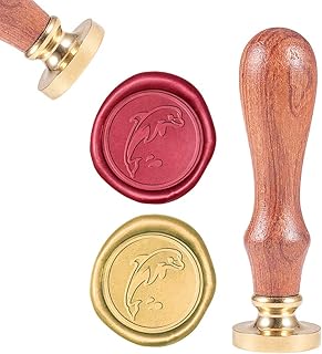 CRASPIRE Tampon de Cire, Tampons de Cire à Cacheter Motif de Dauphin Rétro Bois Tampon Cachet de Cire 25mm Amovible Joint en Laiton Manche en Bois pour Les Enveloppes Invitations Mariage