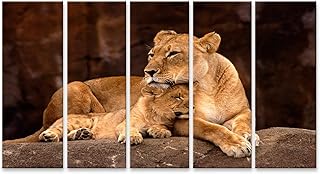 islandburner Tableau Tableaux Lionne et louveteau Cadre sur Toile Impression Photo Affiches
