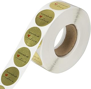 Hearthrousy Étiquettes Autocollantes Kraft Papier Autocollants 500PCS 2.5cm Rond Étiquettes Adhésives Rouleau Handmade with Love pour DIY Cuisson Bureau Décor de Fête Mariage 2.5cm
