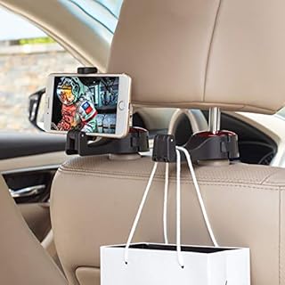 Lot de 2 crochets de siège de voiture avec support de téléphone, universel et multifonctionnel pour appuie-tête de siège de voiture pour sac, sac à main, vêtements, courses