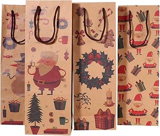 Wakauto 4 Pcs Sacs Cadeaux de Noël Sachet Papier Kraft en Papier avec Poignées Emballages de Cadeaux Sacs pour Bouteilles