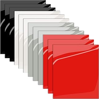 12 Vinyle de Transfert de Chaleur Vinyle de Fer HTV Feuilles de Vinyle de Transfert de Chaleur pour DIY Artisanat, T-Shirts, et Autres Textiles, 10 x 12 Pouces (Rouge, Blanc, Gris et Noir)